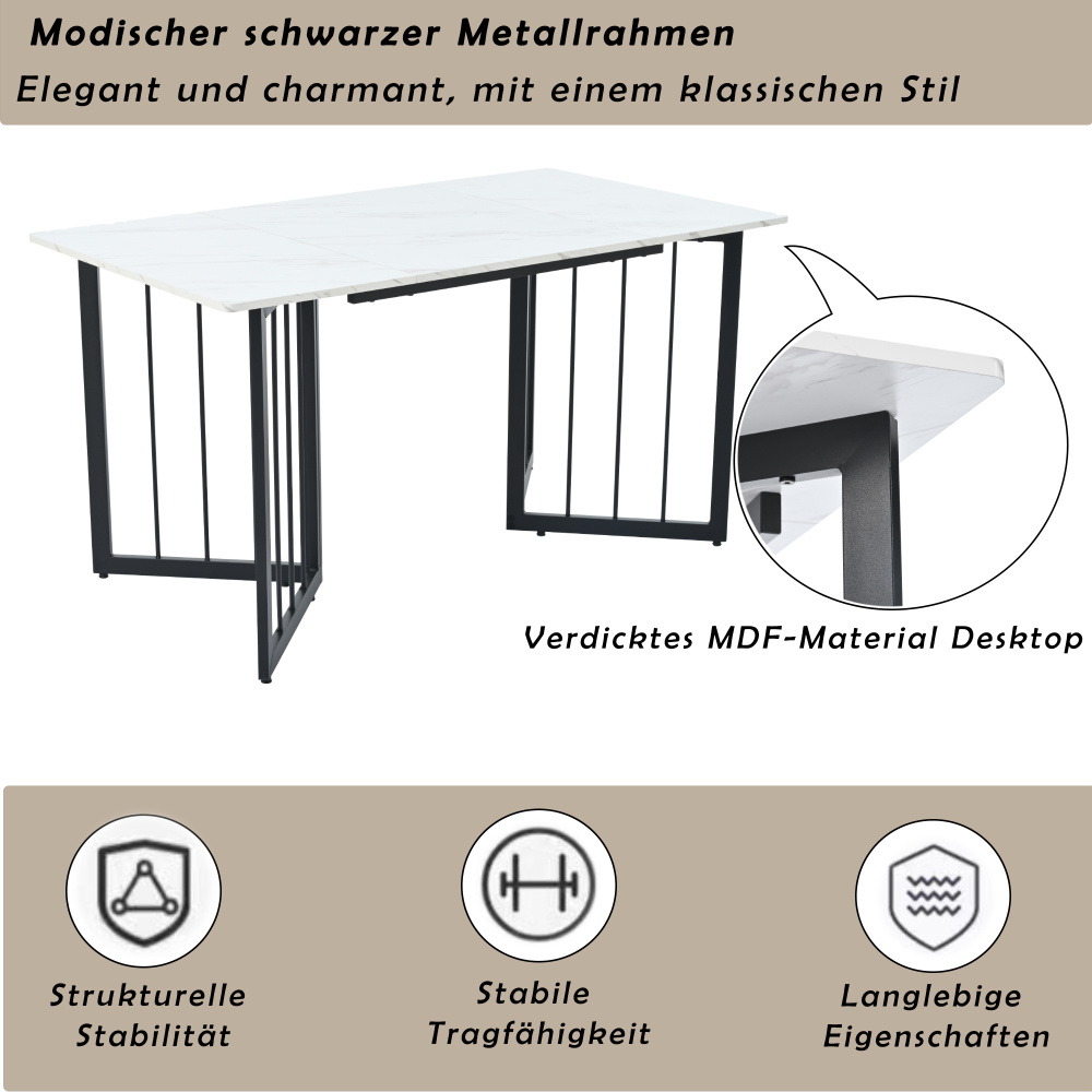 Hergestellt aus hochwertigem MDF-Material präsentiert die Tischplatte ein faszinierendes Marmor-Muster, das eine gelungene Kombination aus Retro-Charme und zeitloser Eleganz darstellt. Die feine Verarbeitung unterstreicht dabei das handwerkliche Können.