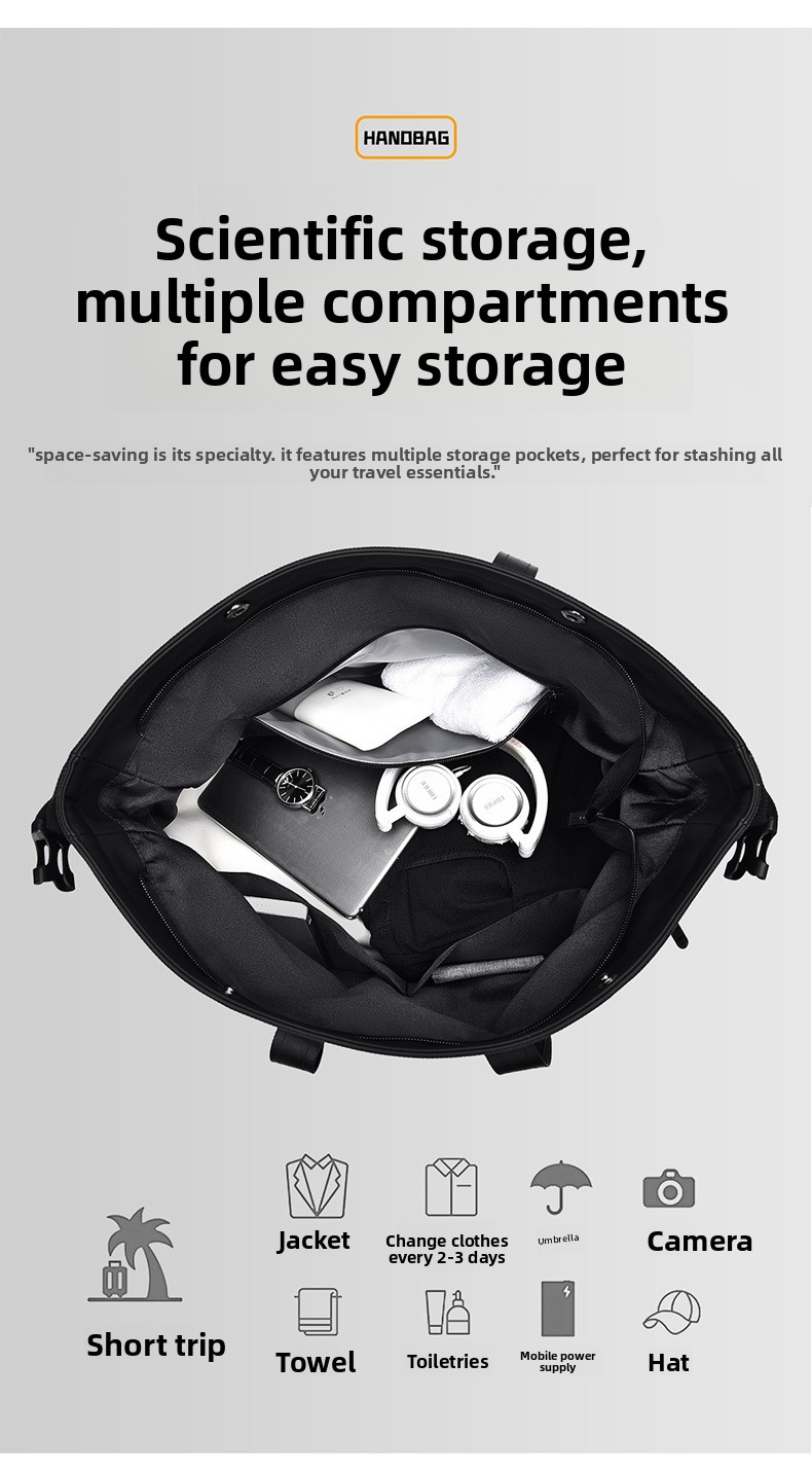Water-Repellent Large-Capacity Travel Tote Bag with Dry/Wet Separation