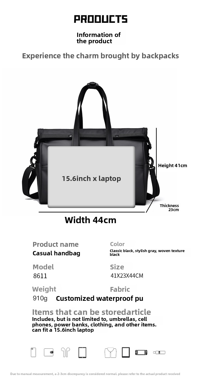 Water-Repellent: PU material with waterproof coating to protect contents.